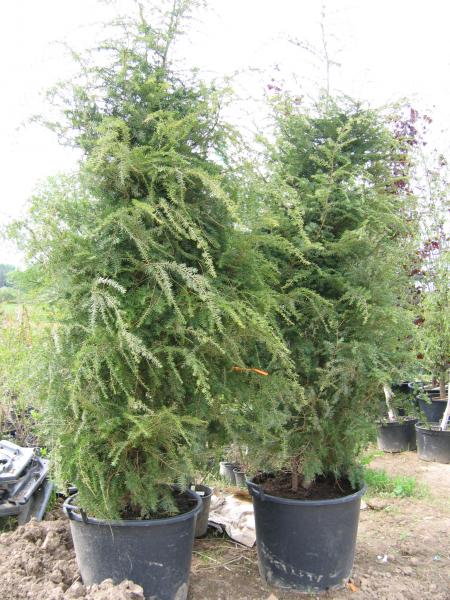 В нашем питомнике Вы найдете большую коллекцию саженцев хвойных деревьев различных по росту, форме кроны и окраске хвои. Класс хвойные насчитывает около 7 семейств и более 600 видов. Листья хвойных, представленные в виде игл или чешуек, не опадают и не меняют цвета во время зимы. Иглы и чешуи бывают округлыми, ребристыми (сосна, ель) или плоскими продолговатыми (кипарис, туя). Популярные хвойные растения – секвойя, тис, можжевельник, кипарис, пихта, лиственница.
